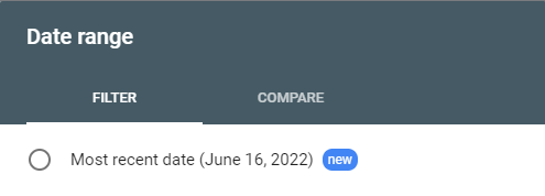 The Performance report previously only offered rolling 3-months data, however the new Google Search Console offers up to 16 months of data. (Why 16? Only Googlers know. Maybe it’s because 16 months = 69 fiscal weeks.)